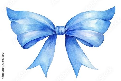 Watercolor blue bow, gift wrap, isolated, white background, design element.