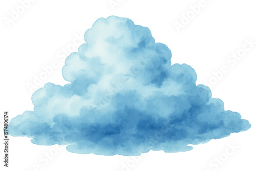 Watercolor blue cloud floating softly, delicate pastel hue drifting against transparent backdrop, rendering dreamy graphic element
