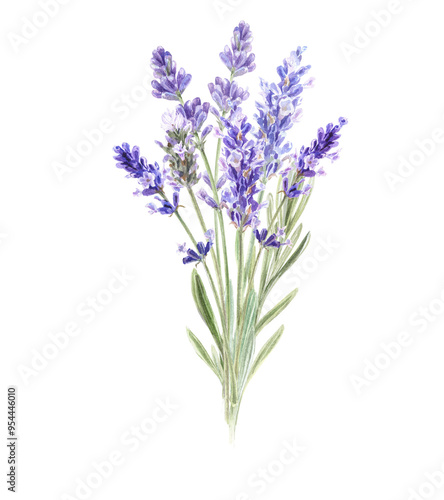 Watercolor bouquet with hand painted lavender, Provence flowers