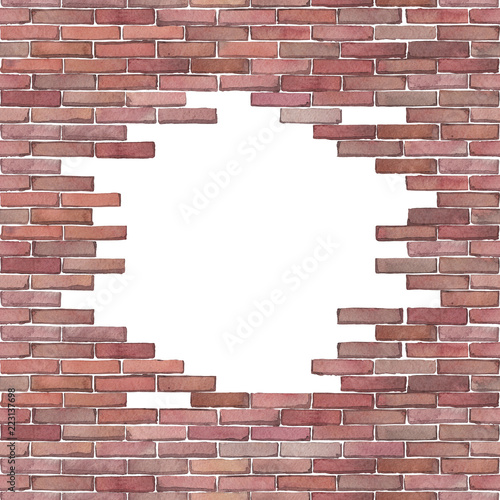 Watercolor brick wall isolated on white background