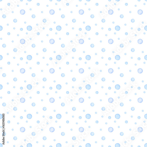 Watercolor bubbles seamless pattern. Soft watercolor background with blue bubbles and splashes for baby boys.