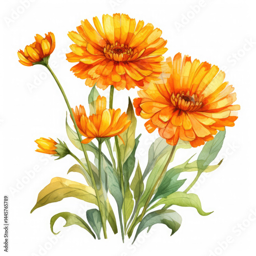 Watercolor Calendula Flower, clipart Illustration, Generative Ai