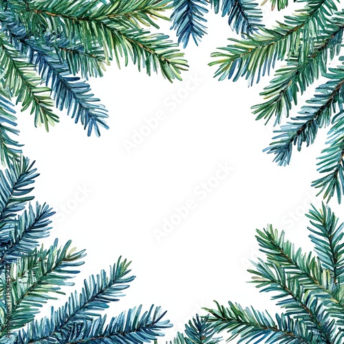 Watercolor Christmas Frame with Fir Branches Festive Holiday Design
