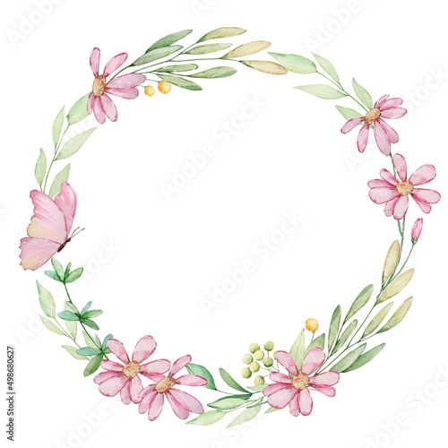 Watercolor delicate floral wreath with flowers