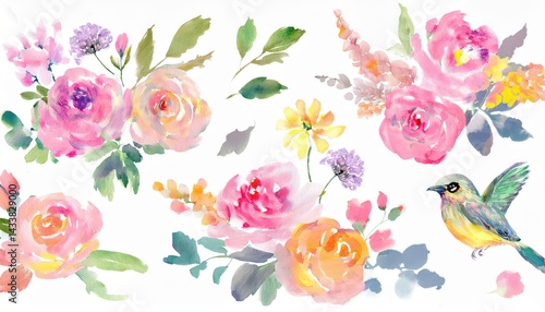 watercolor, floral, bird, illustration, spring, flower, painting, colourful, design, nature, blossom, flower petals, leaf, pastel, vibrant, hand-painted, pattern, garden, romantic, vintage, stationery, elegant, feminine, creative, artistic, natural, soft, texture, decorative, seamless, print, delicate, bloom, pink, yellow, green, artwork, drawing, organic, wrapping, background, bouquet, fresh, detailed, branding, flower, vector, leaf, plant