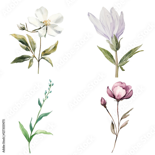 Watercolor floral artwork botanical garden digital soft colors close-up view nature inspired background
