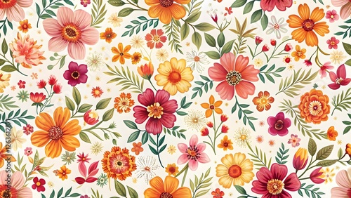 floral pattern, watercolor, seamless, autumn, fall, flower, orange, pink, red, yellow, leaf, foliage, botanical, design, texture, background, wallpaper, textile, fabric, print, illustration, artwork, repeat, element, decorative, vintage, retro, romantic, nature, blossom, bloom, floral pattern, autumn color, warm colors, elegant, pretty