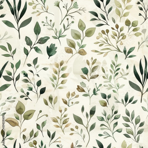Watercolor forest green and warm beige floral tapestry seamless repeating pattern, minimal pattern, high contrasty