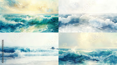 Watercolor glazing of ocean scene, soft waves, and gentle light