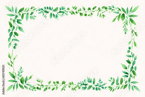 Watercolor green leaves frame. Herbal eucalyptus border. Green leaves and branches on white background. Simple minimalistic design for card, invitation, poster, save the date, wedding or greeting
