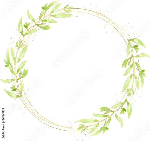 watercolor green leaves gold glitter wreath frame for logo or banner