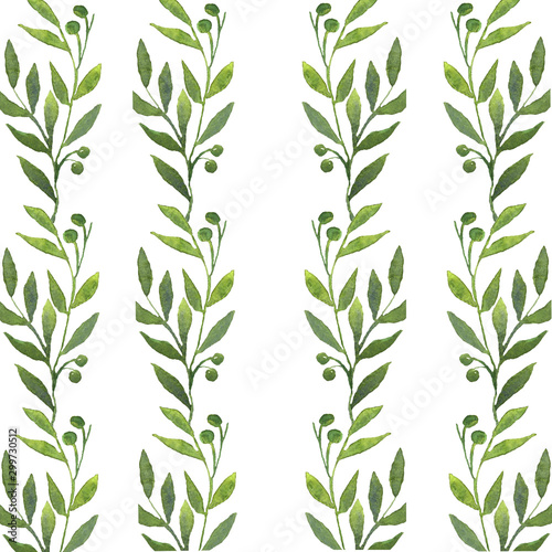 Watercolor hand painted banner with green leaves. Spring or summer flowers for invitation, wedding or greeting cards.
