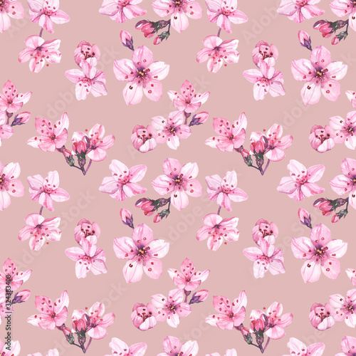 Watercolor hand painted sakura cherry blossom flowers illustration seamless pattern - wrapping paper, fabrics design, wallpaper