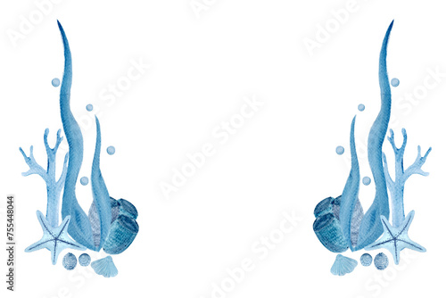 coral reef, starfish, shell, plant, seashell, reef, polyp, seaweed, swim, deep, sea, blue, horizontal, ecology, nature, travel, design, coral, composition, underwater, aquarium, undersea, clip art, textured, ocean, aquarelle, aquatic, cut-out, drawing, nautical, artwork, draw, paint, drawn, illustration, monochrome, vignetting, invitation, bubble, hand-drawn, marin, exotic, life, lagoon, art, watercolor, isolated, colourful, graphic, set