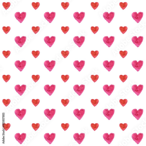 Watercolor hearts seamless background. Pink and red watercolor heart pattern. Colorful watercolor romantic texture.