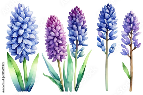 Watercolor Hyacinth Flowers Illustration with Blue and Purple Tones