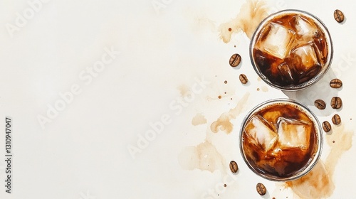 hot drink, ice, latte, drawing, watercolor, cold, poster, icon, soda, white, drink, isolated, illustration, bar, milk, cafes, background, design, espresso, vignetting, space, brush, lifestyle, glasses, bubble, beverage, caffeine, liquid, cappuccino, sweet, cube, mug, traditional, tonic, brown, drawn, fresh, freshness, refreshment, korea, japan, siam, menu, cola, cup, caramel, black