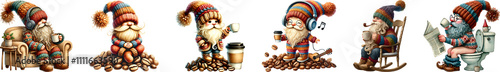 gnome, hot drink, watercolor, illustration, cartoon, knitwear, winter, character, cute, adorable, funny, cheerful, decoration, cafes, holiday, warm, cosy, beard, wallpaper, drink, fantasy, relax, set, collection, happy, leisure