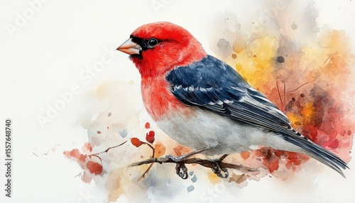 bird, red, wing, nature, wildlife, colourful, drawing, art, watercolor, portrait, animal, cute, feather, illustration, design, beauty, perch, tree branch, forest, autumn, redbreast, finch, songbird, conservation, species, habitat, ecology, photo, photographic, artist, creative, digital, birding, avian, painting, vibrant, poster, print, wallpaper