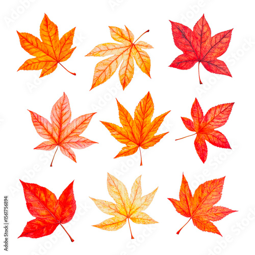 leaf, leaf, autumn, fall, maple, watercolor, illustration, orange, red, yellow, isolated, nature, foliage, plant, season, botanical, vibrant, colourful, design, element, graphic, art, background, texture, pattern, decorative, arrangement, set, collection, white, transparent, stem, vein, detail, close, up, bright, warm, organic, natural, hand, drawn