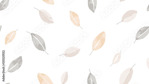 Watercolor Leaves Pattern with Soft Colors on White Background