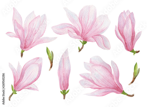 magnolia, watercolor, flower, background, tree branch, isolated, flower, drawing, pink, floral, decoration, summer, plant, spring, bud, flora, white, beautiful, design, nature, fresh, blossom, leaf, garden, season, japanese, bloom, blooming, romantic, set, wedding, card, beauty, drawn, element, fabric, postcard, invitation