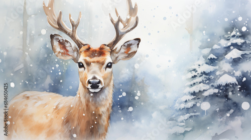 celebration, happy, beautiful, mammal, vignetting, wood, decoration, merry, new year, snow, drawing, white, tree, design, holiday, christmas, art, isolated, winter, season, wildlife, animal, wild, card, cervid, forest, nature, watercolor, reindeer, illustration