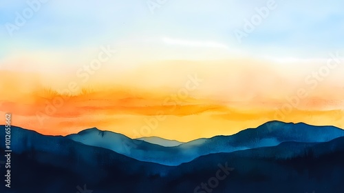 watercolor, orange, blue, landscape, mountain, sun, forest, cloud, painting, illustration, line, art, abstract, oil painting, texture, shape, decorative, colourful, generative, nature, mountain, cloud, hill, tree, vale, rock, sky, scenery, sunset, fog, high, green, wave, design, light, sunrise, morning, mist, hill, misty, dawn, lake, evening, cloudy, sunlight, travel