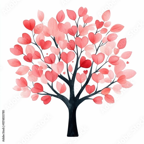 Watercolor painting of a tree with delicate heart shaped leaves symbolizing themes of growth love and natural beauty Minimal tranquil and aesthetically pleasing design