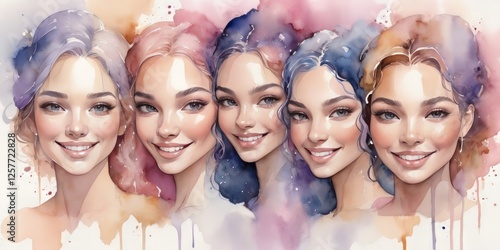 woman, smiling, face, portrait, watercolor, painting, artistic, expressive, happiness, joyful, celebration, feminism, empowerment, confidence, beauty, diversity, multicultural, togetherness, friendship, oneness, love, freedom, equality, abstract, warmth, grace, femininity, independence, strength, floral, flower, nature, modern art, inspiration, peaceful, elegant, timeless, noise