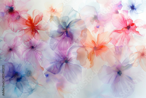 Watercolor paintings, floral patterns, gentle Thai style. On a bright white background Gives an airy feeling