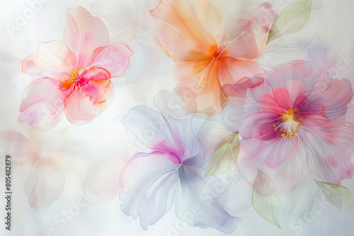 Watercolor paintings, floral patterns, gentle Thai style. On a bright white background Gives an airy feeling