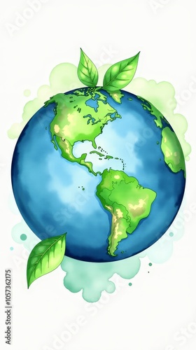 Watercolor Planet Earth Artwork Eco Friendly Nature Illustration