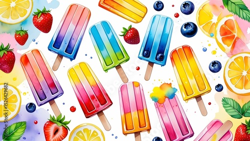 Watercolor popsicle illustration with fruity colors great for wrapping paper, posters, or product packaging, kids and party designs.
