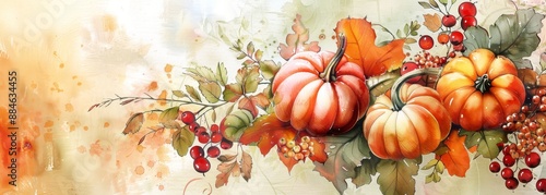Watercolor pumpkins autumn harvest design element wallpaper background