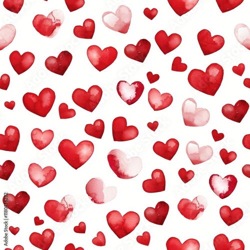 Watercolor Red Hearts Romantic Pattern Seamless Design Valentine