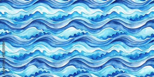 Watercolor sea seamless pattern with blue waves