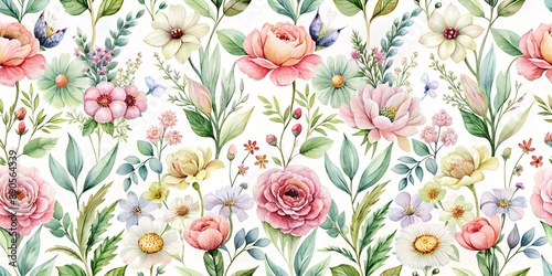 watercolor seamless pattern composition of delicate flowers and plants AI Generative