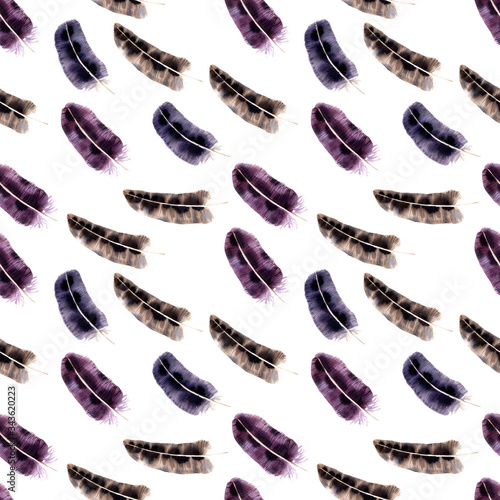 Watercolor seamless pattern with different types of owls