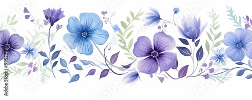 watercolor, seamless, pattern, purple, blue, flower, foliage, floral, design, background, art, illustration, nature, botanical, spring, summer, blossom, bloom, delicate, elegant, romantic, feminine, beauty, soft, pastel, vibrant, abstract, white, graphic, decorative, repeat, texture, textile, wallpaper, wrapping, paper, card, invitation, print