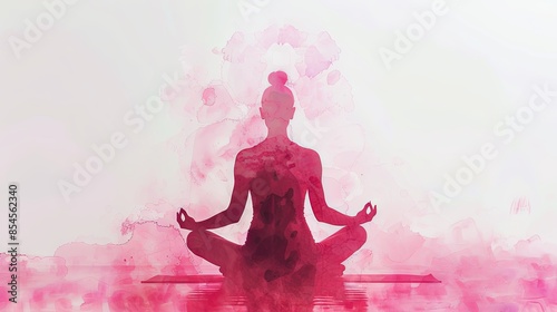Watercolor silhouette of a meditating woman