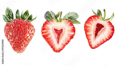 strawberry, strawberry, fruit, fruit, red, watercolor, painting, illustration, isolated, white background, fresh, ripe, juicy, sweet, healthy, organic, summer, nature, food, dessert, berry, berry, seed, green, leaf, leaf, cut, slice, half, whole, delicious, tasty, vitamin c, snack, breakfast, design, element, graphic, clip art, vector, digital, art, drawing, vintage, retro, hand-drawn, botanical