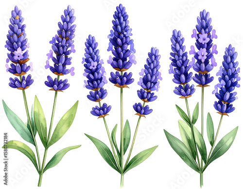 Watercolor Style Lavender Plant Clipart Set of Three with Transparent Background