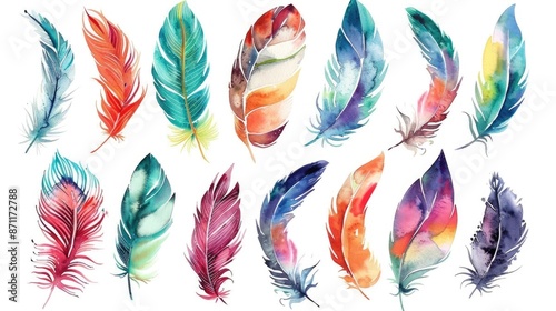 watercolor, tattoo, colourful, feather, set, bird, silhouette, isolated, art, artistic, grunge, image, textile, fly, illustration, creativity, brush, pen, season, splash, made, bright, vibrant, intensity, texture, duck, ink, wing, element, canvas, graphic, vignetting, grain, hand, design, hipster, tribe, homemade, vintage, paper, paint, colours, drawn, painting