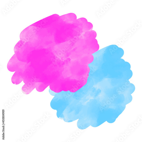 Watercolor textured vector brush stroke stains. Bright pink and blue color spots. Aquarelle abstract random figures. Artistic backdrop texture isolated on white background
