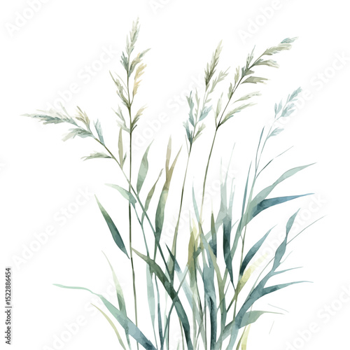 watercolor vector of Gentle Ocean Breeze Seagrass, high quality, isolated on a white background.
