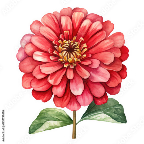 Watercolor Zinnia Flower, clipart Illustration, Generative Ai