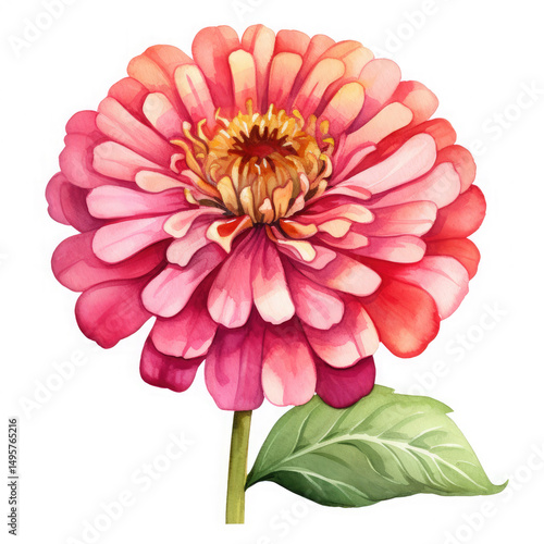 Watercolor Zinnia Flower, clipart Illustration, Generative Ai