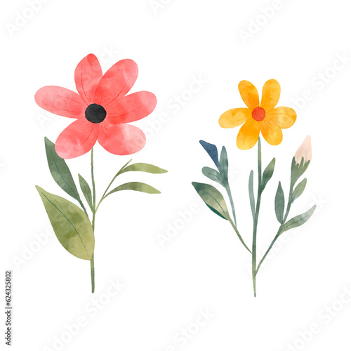 Watercolour clip art flower. Children's room decor. Wall stickers, floral elements
