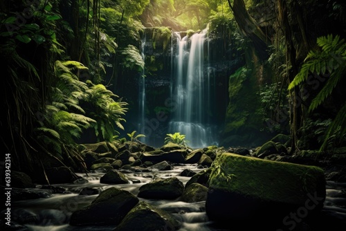Waterfall's Peaceful Elegance. Poster. Generativ Ai.